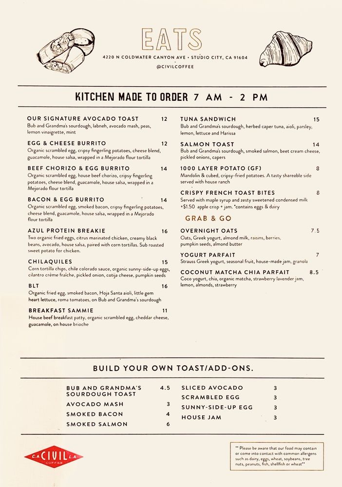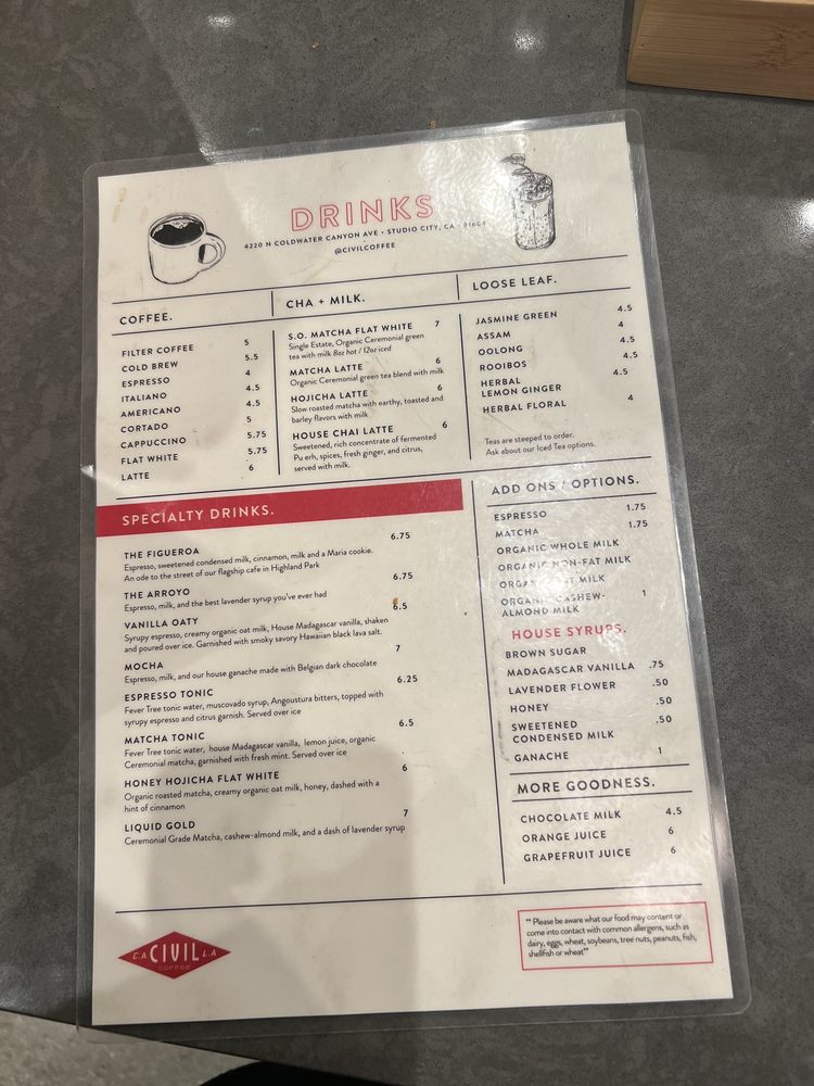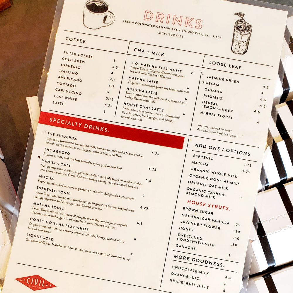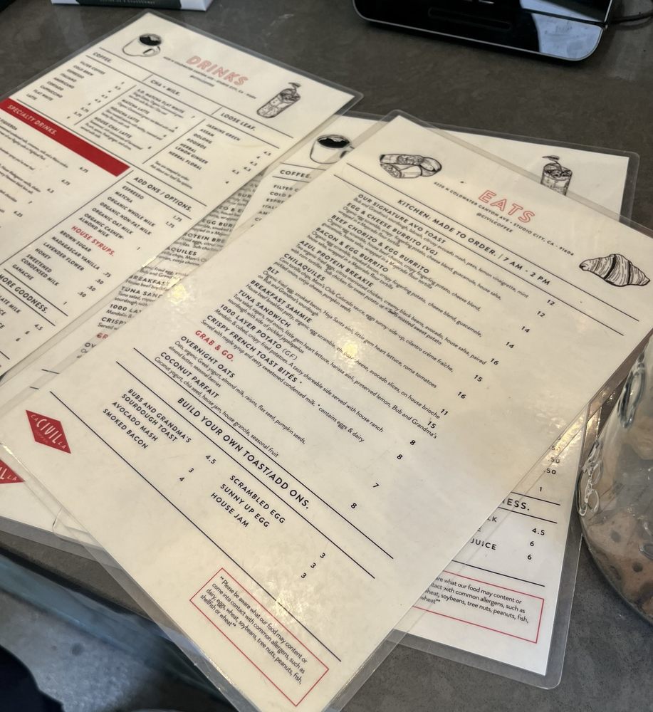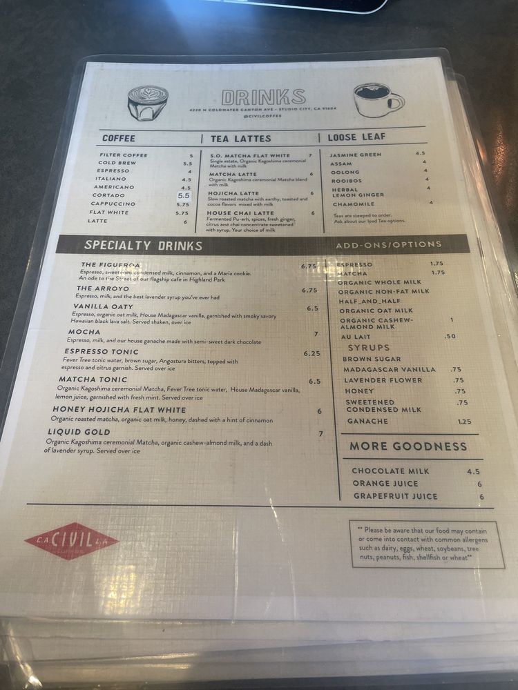 Civil Coffee Studio City Menu (Update 2025)